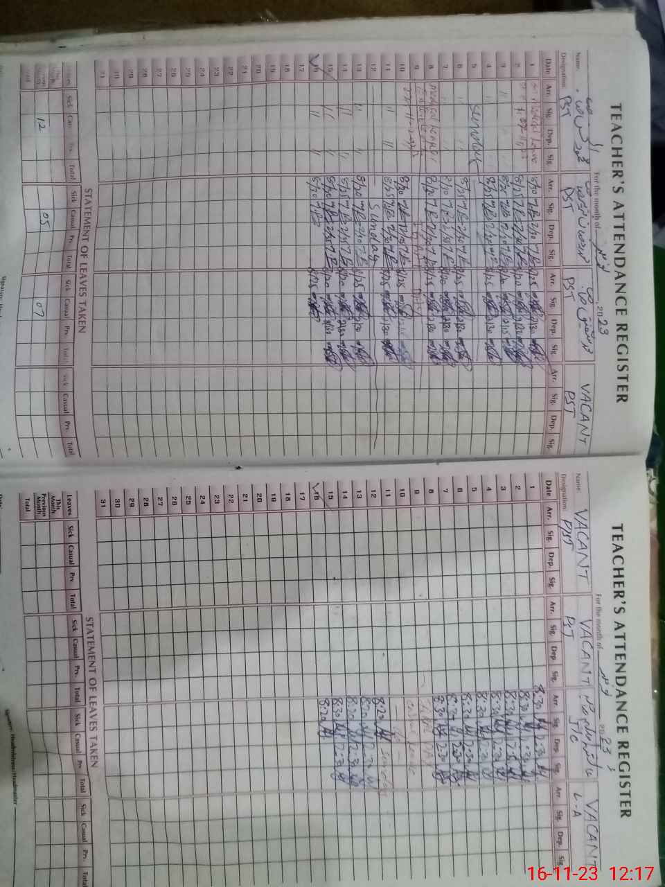 | No. of Students Present - Female | 0 | 0 | 0 | 0 | 0 | 0 | 0 | 0 | 0 | 0 | 0 | 0 | 0 | 0 | ||