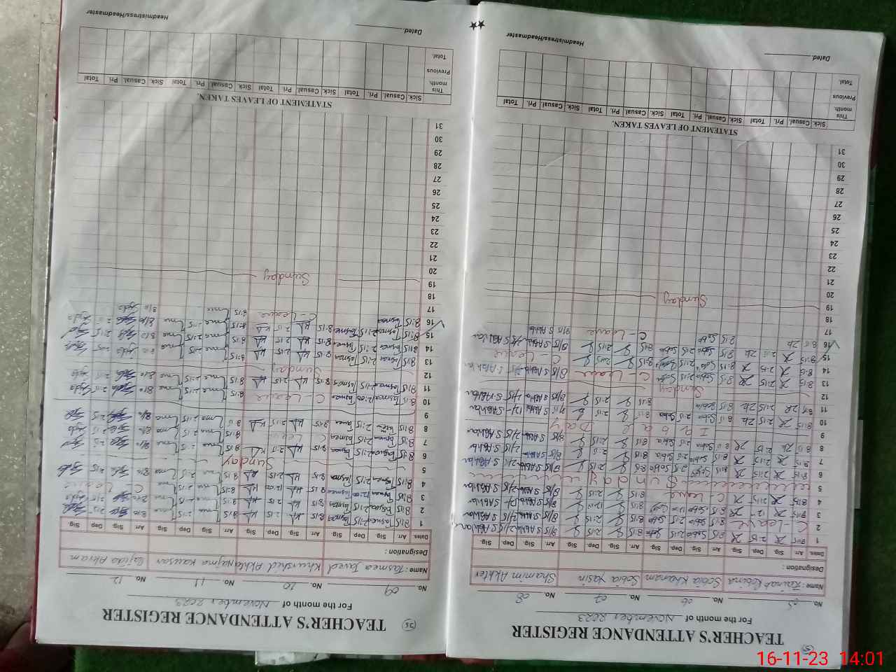 | CNIC | Full Name | Designation | R/C | Absence During Last Calender Month |