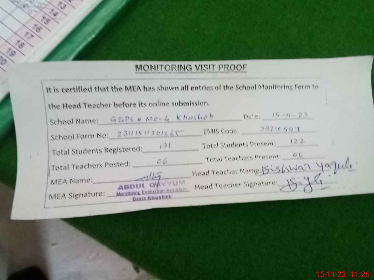 | EMIS Code: 38210547 | Name of School: GGPS MC NO. 4 KHUSHAB | |||