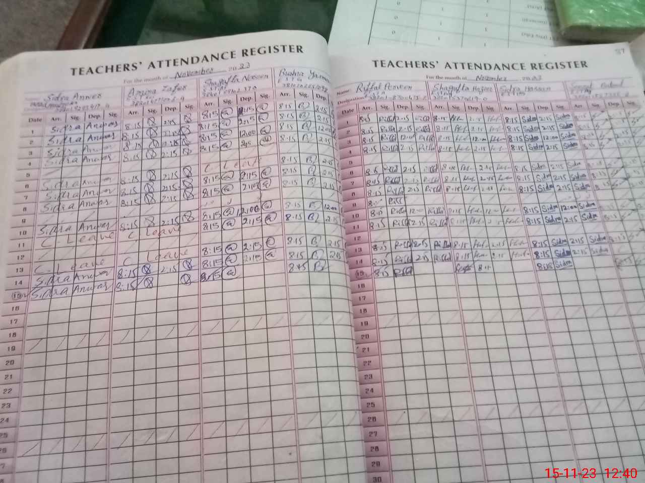 | CNIC | Full Name | Designation | R/C | Absence During Last Calender Month |