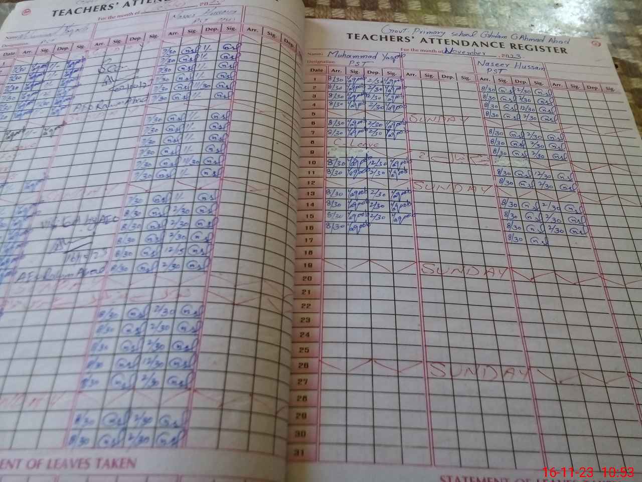 | CNIC | Full Name | Designation | R/C | Absence During Last Calender Month |