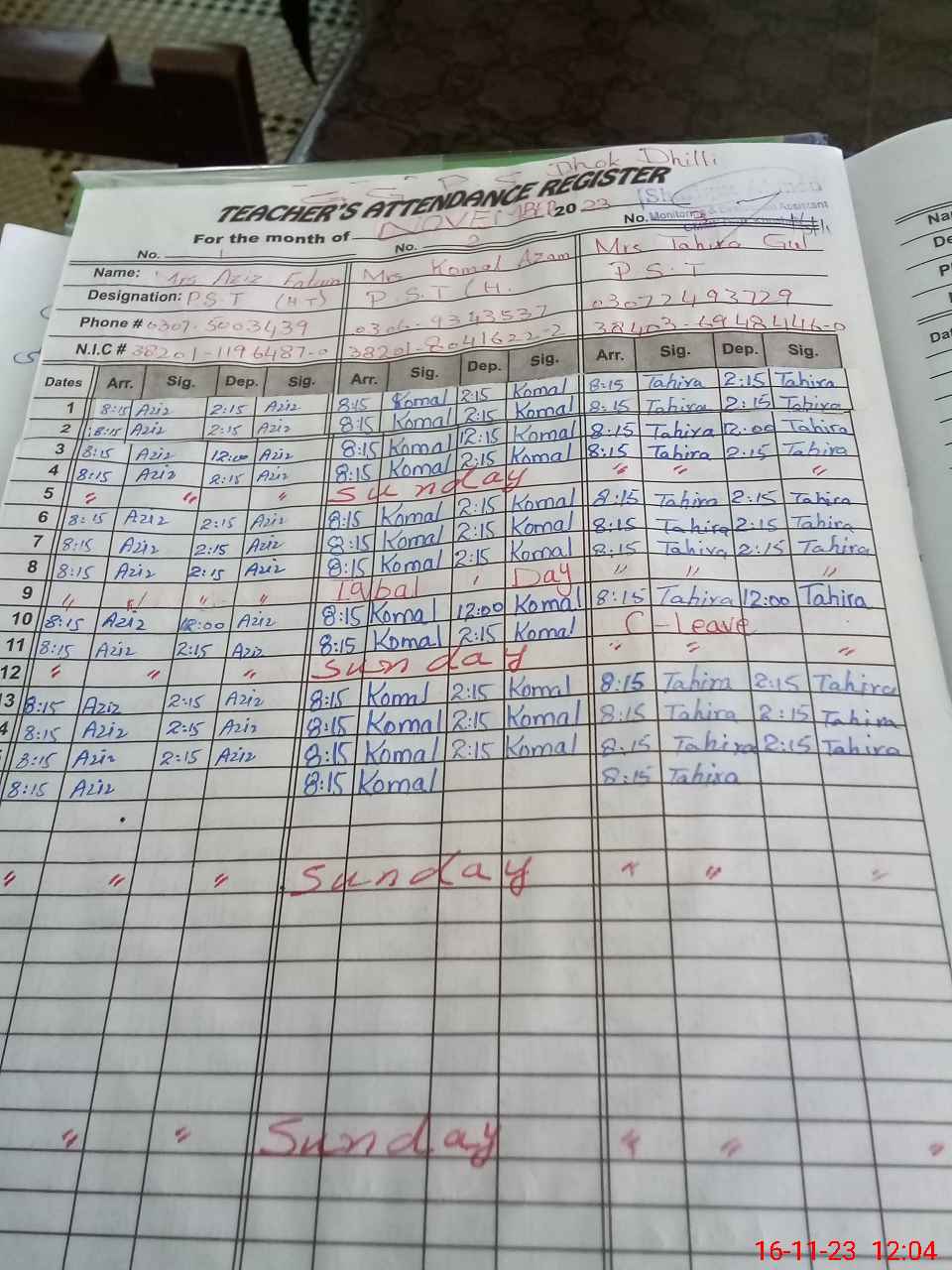 | Name: Az**** Fa**** Designation: (School Headmaster's/Headmistress's) PST Phone/Cell Number: 03**** |
