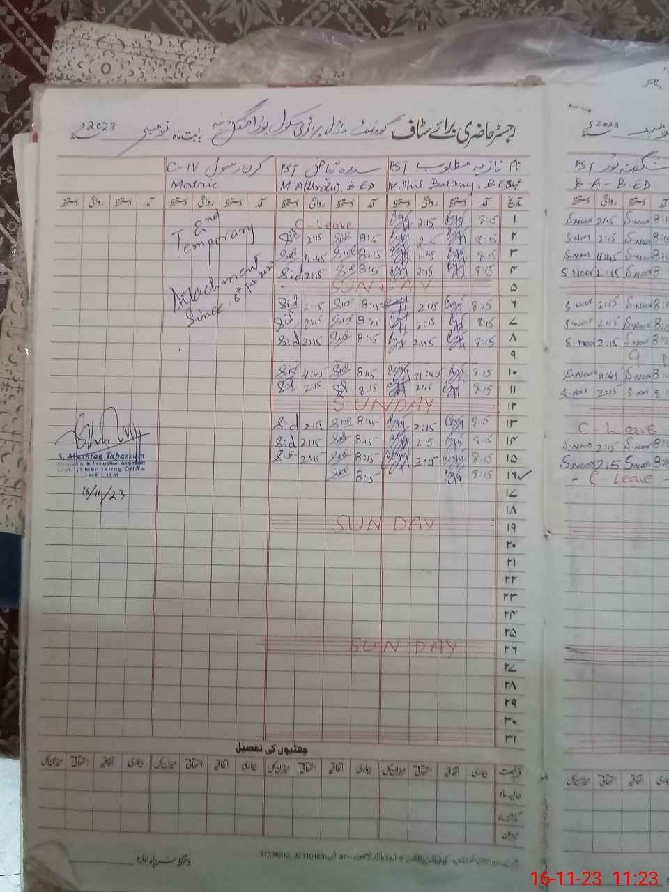 | CNIC | Full Name | Designation | R/C | Absence During Last Calender Month |