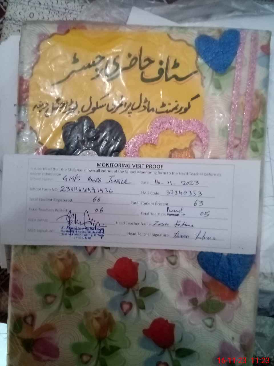 | Attendance Register | Head Teacher | MEA with School | Visit Proof |