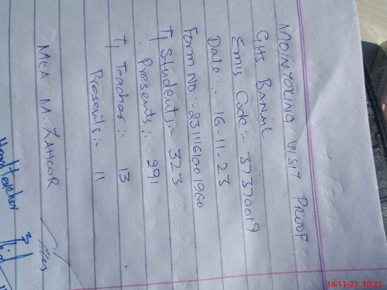 | Monitoring Date: 16-11-2023 | Start Time: 16-11-2023 09:27 AM | End Time: 16-11-2023 10:22 AM | Name of MEA: Re**** Mu**** Za**** | |