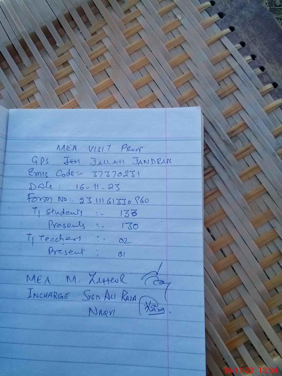 | EMIS Code: 37370231 | Name of School: GPS JHELLA JANDRAH | |||