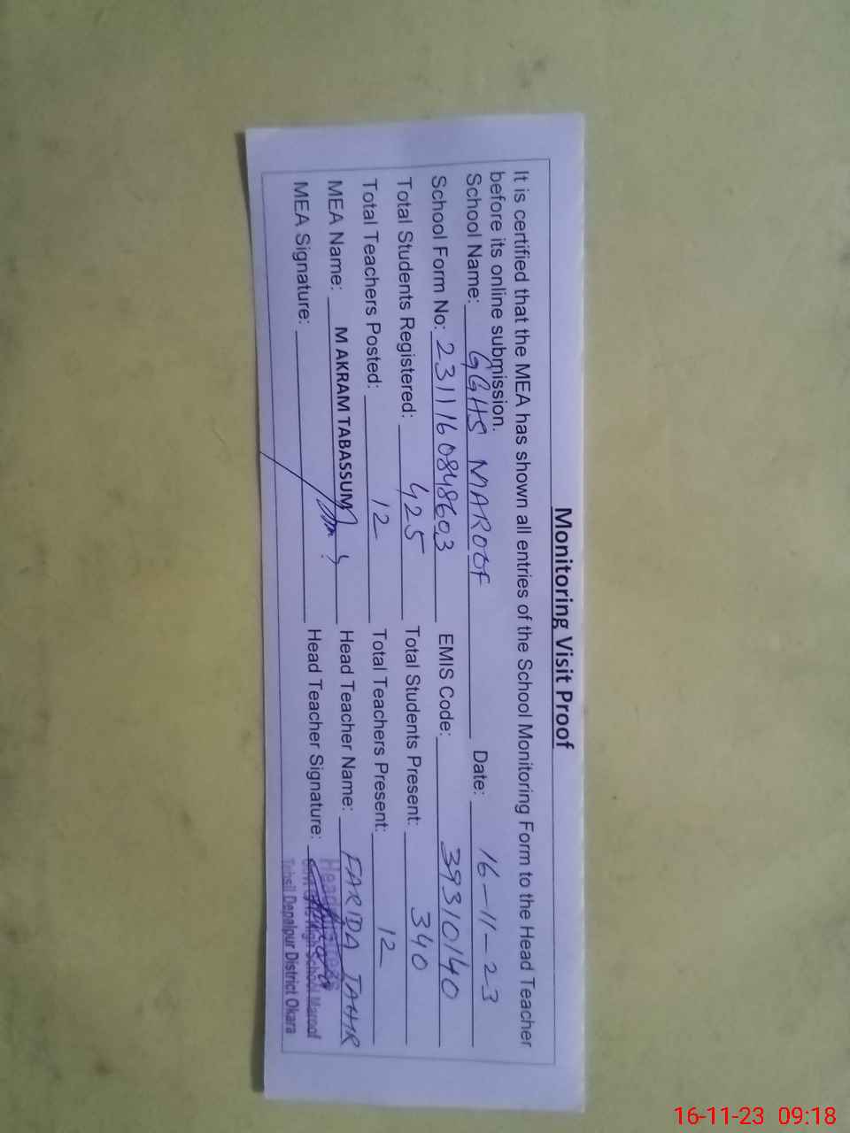 | EMIS Code: 39310140 | Name of School: GGHS MAROOF | |||