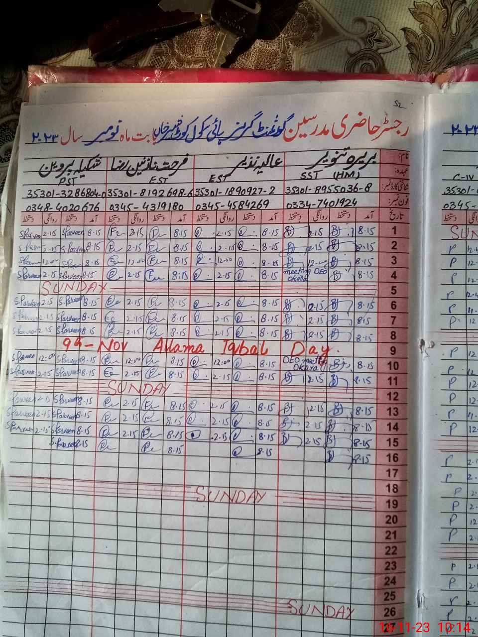 | Name: Sh**** Pa**** Designation: (School Headmaster's/Headmistress's) SSE Phone/Cell Number: 03**** |