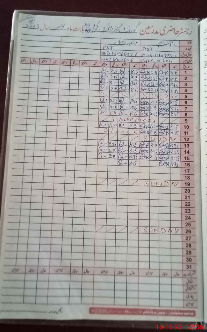 | CNIC | Full Name | Designation | R/C | Absence During Last Calender Month |