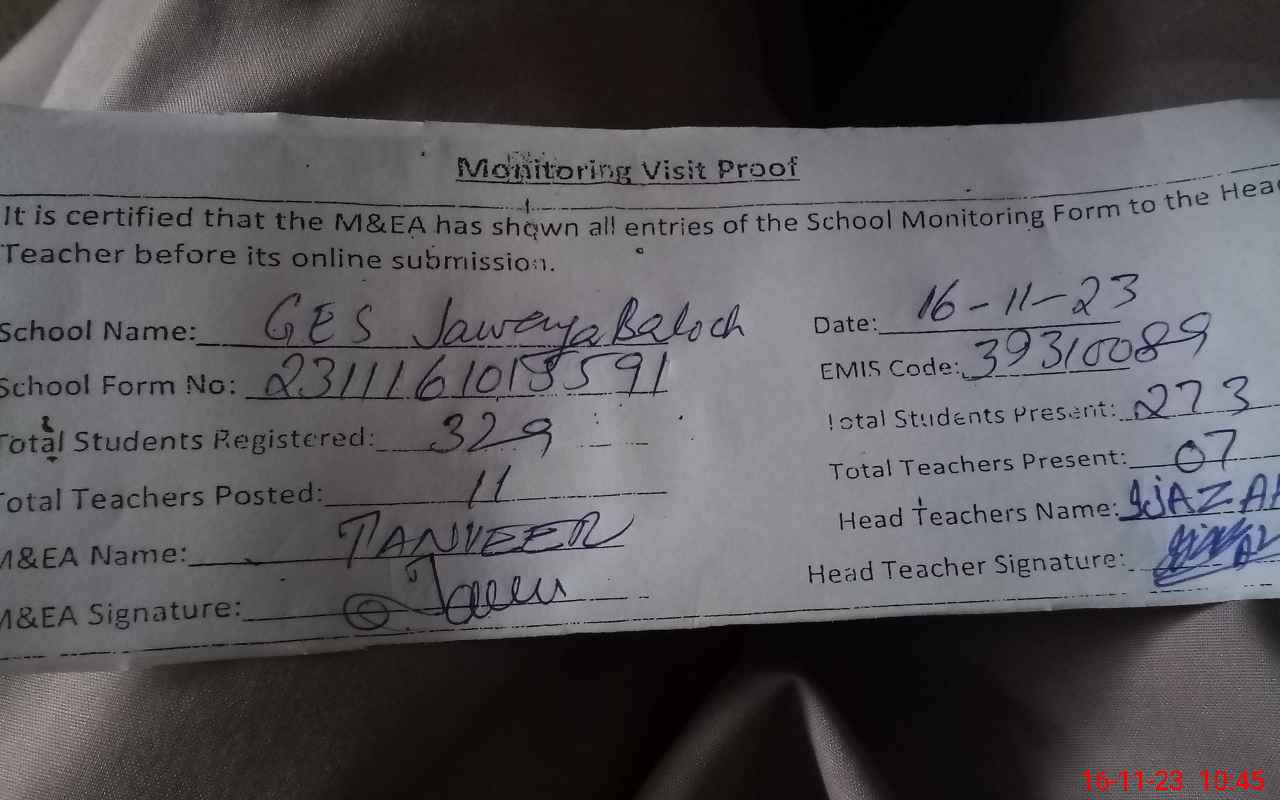 | EMIS Code: 39310089 | Name of School: GES JAWAYA BALOCH | |||