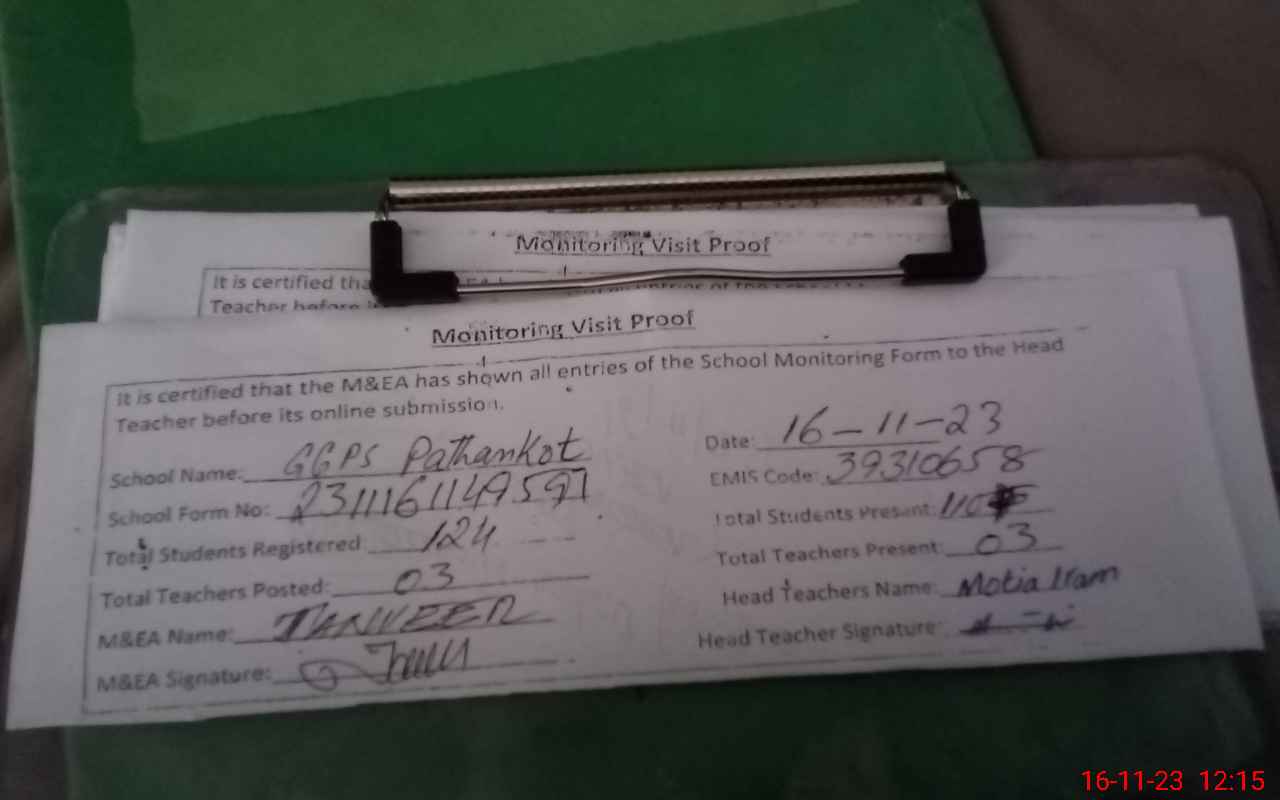 | EMIS Code: 39310658 | Name of School: GGPS PATHAN KOT | |||