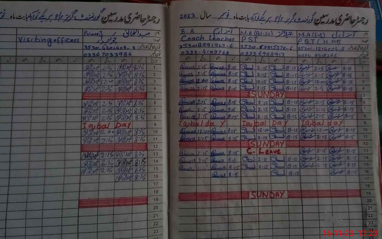| CNIC | Full Name | Designation | R/C | Absence During Last Calender Month |