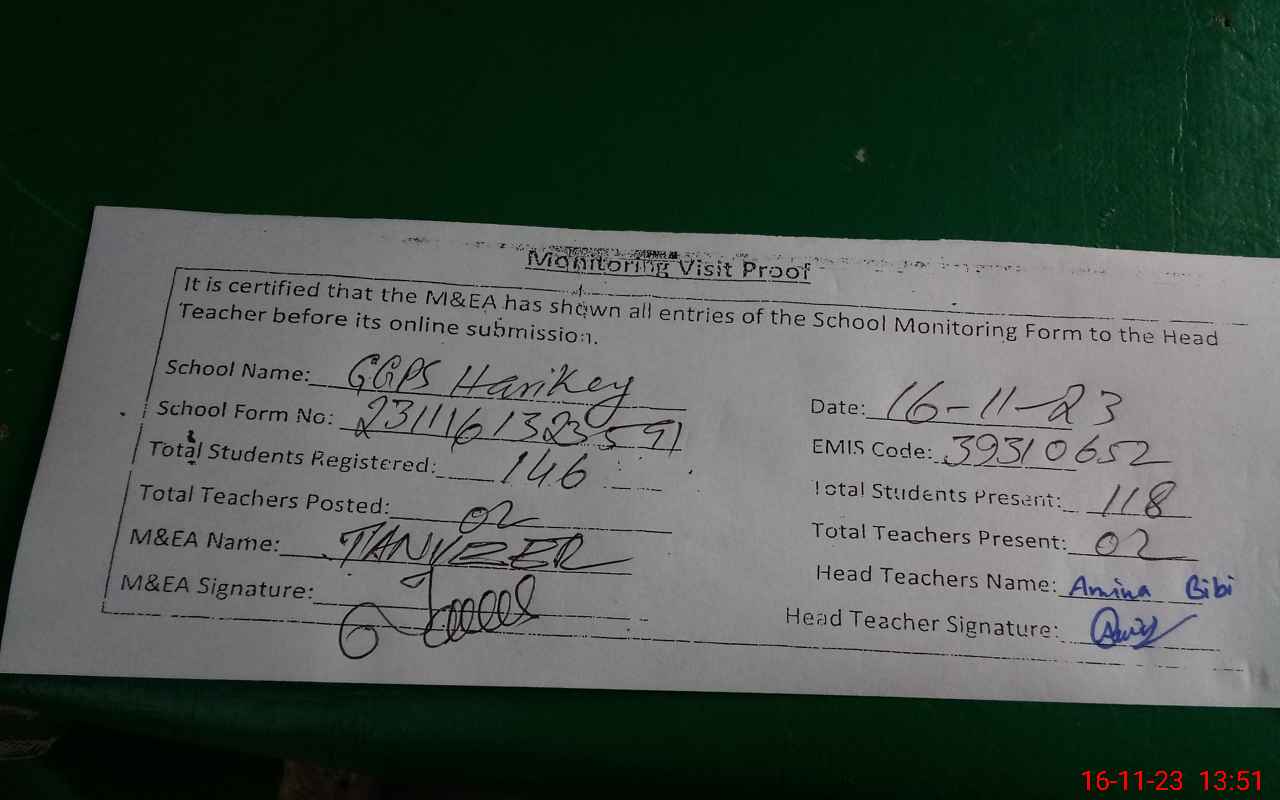 | EMIS Code: 39310652 | Name of School: GGPS HARIKEY NAU ABAD | |||