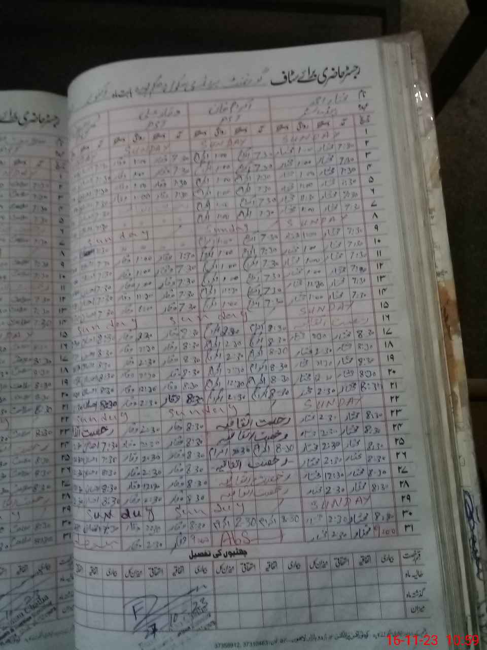 | CNIC | Full Name | Designation | R/C | Absence During Last Calender Month |