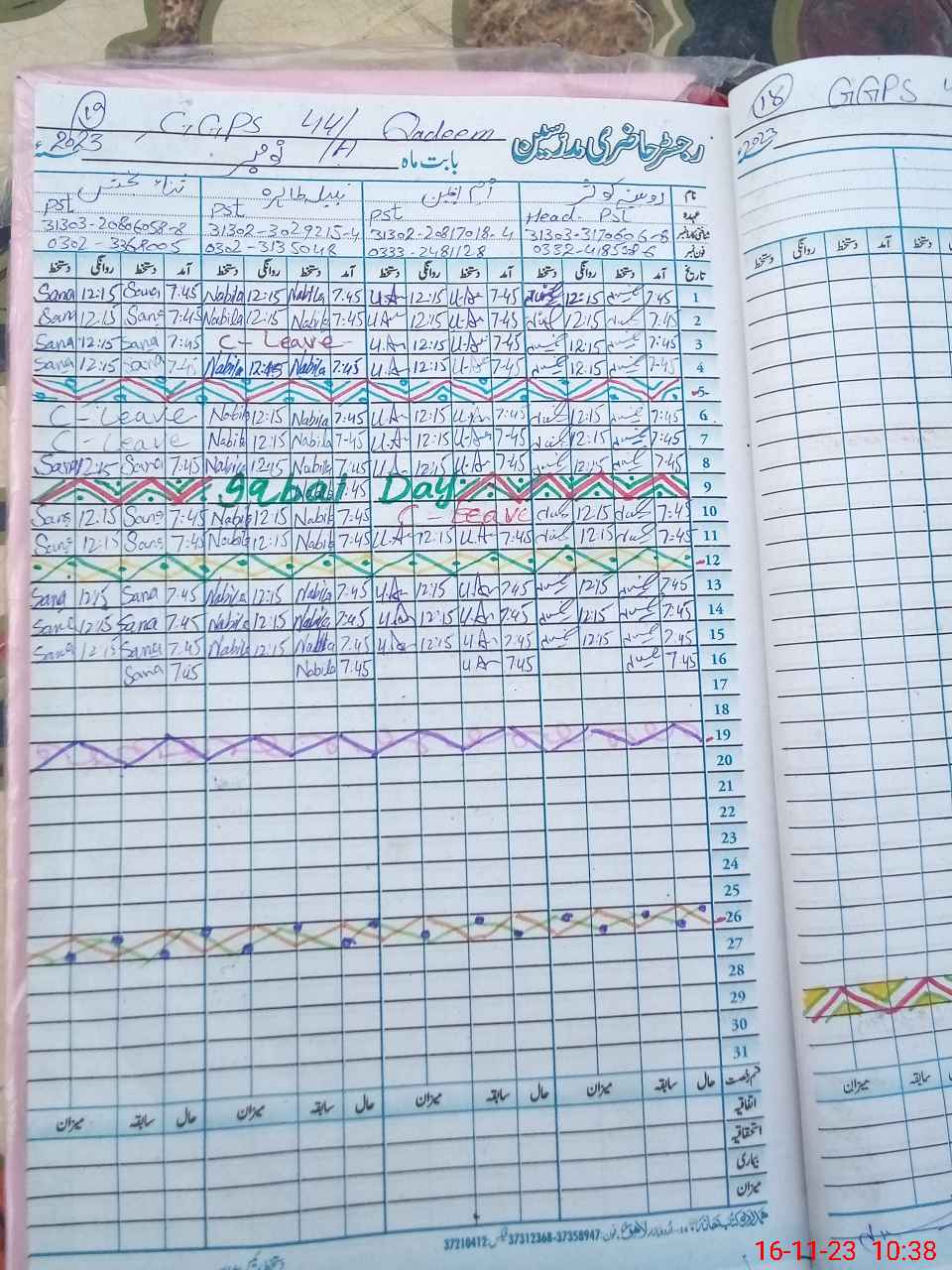 | Leave | Duty | Absent | Maternity | Medical | Ex- Pak |