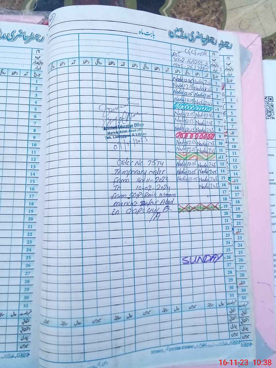 | Name: Ru**** Ka**** Designation: (School Headmaster's/Headmistress's) PST Phone/Cell Number: 03**** |