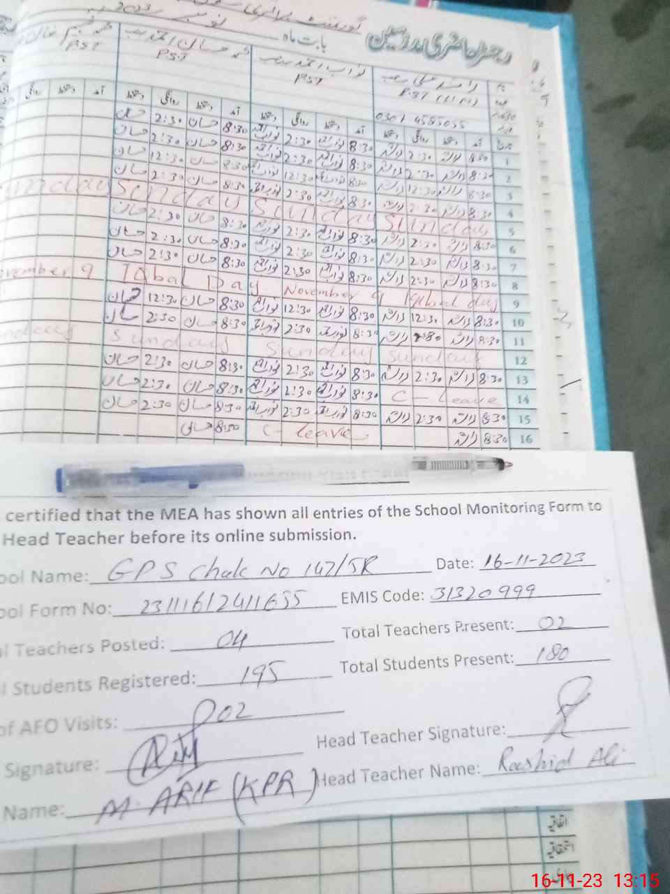 | 31**** | Mu**** Fa**** Kh**** | 2 | 2 | 0 | 0 | 0 | 0 | 0 | 0 | 0 | 0 | 0 | Absent (Un-Authorized) |