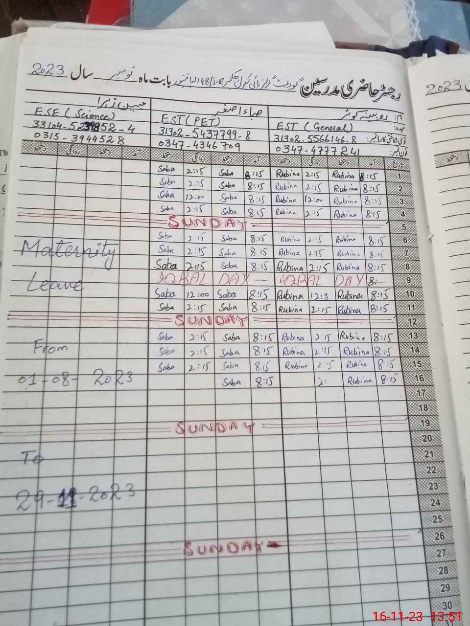 | 33**** | Mu**** Za**** | 2 | 2 | 0 | 0 | 0 | 0 | 0 | 0 | 0 | 0 | 0 | Maternity |