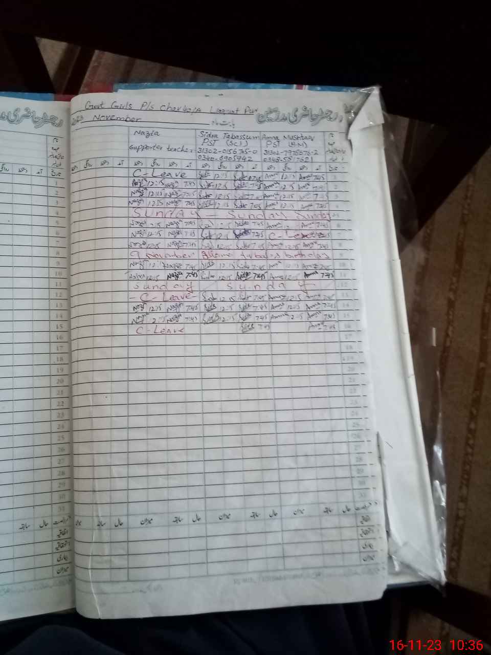 | CNIC | Full Name | Designation | R/C | Absence During Last Calender Month |
