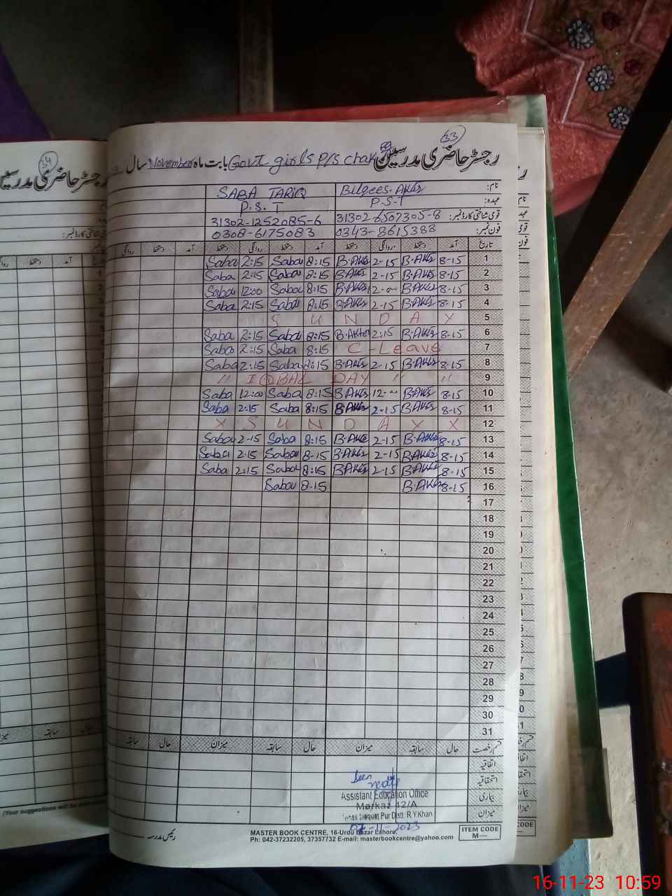 | CNIC | Full Name | Designation | R/C | Absence During Last Calender Month |