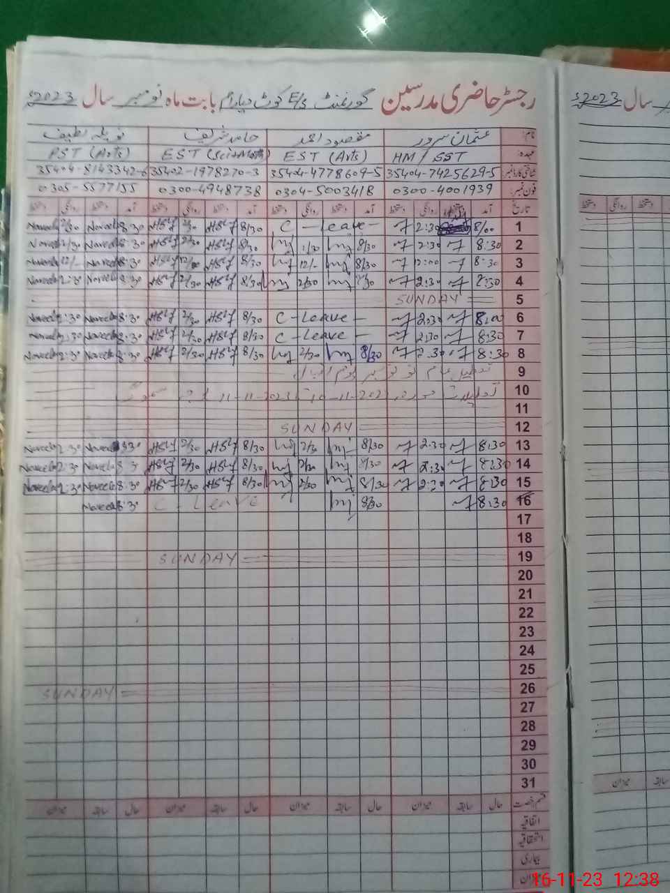 | Name: Us**** Sa**** Designation: (School Headmaster's/Headmistress's) SST (General) Phone/Cell Number: 03**** |