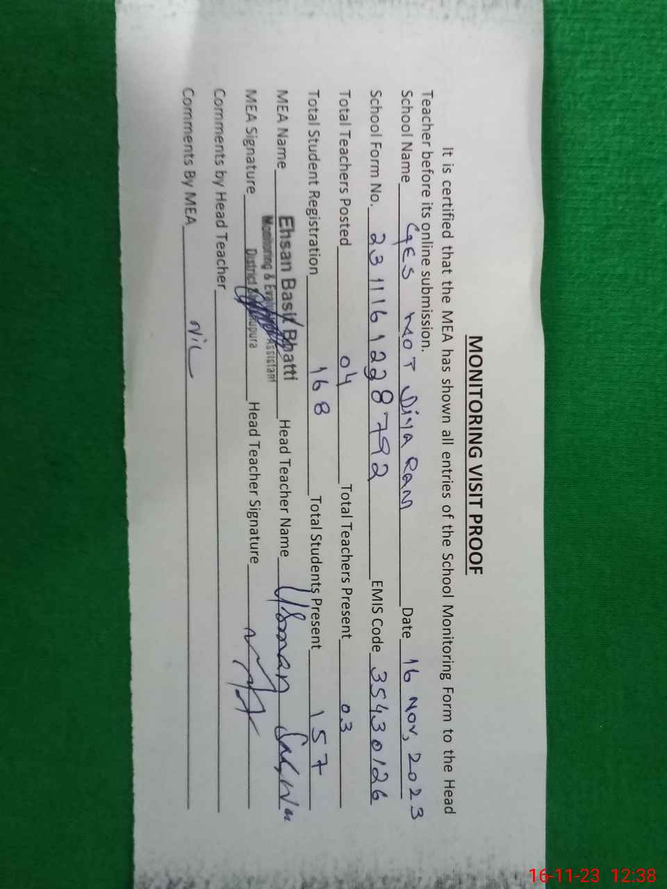 | EMIS Code: 35430126 | Name of School: GES KOT DIYA RAM | |||