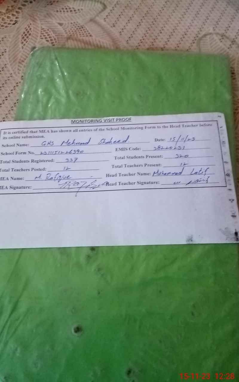 | EMIS Code: 38220231 | Name of School: GHS MAHMOOD SHAHEED | |||
