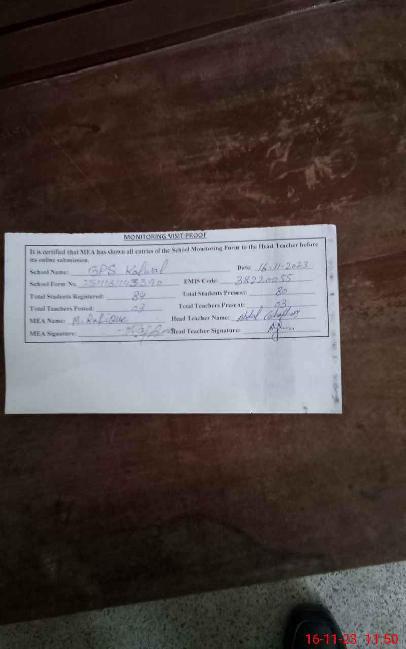 | EMIS Code: 38220055 | Name of School: GPS KALWAL | |||