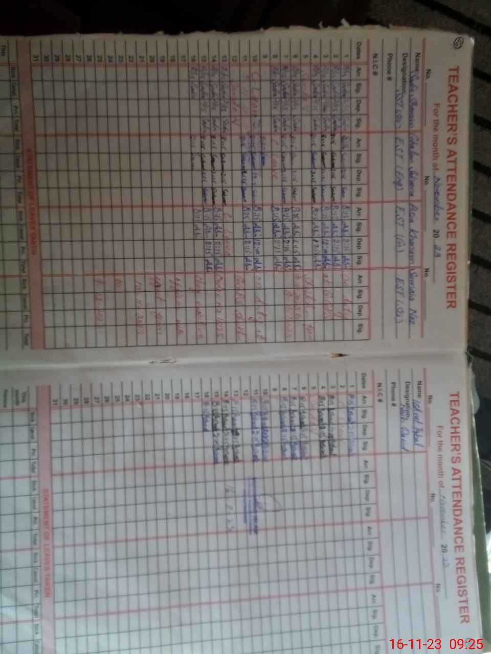 | CNIC | Full Name | Designation | R/C | Absence During Last Calender Month |