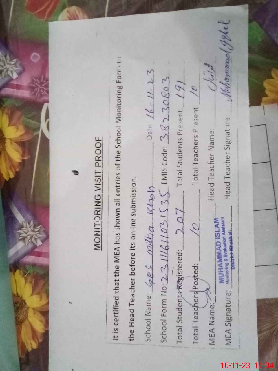 | EMIS Code: 38230803 | Name of School: GHS MITHA KHOH | |||