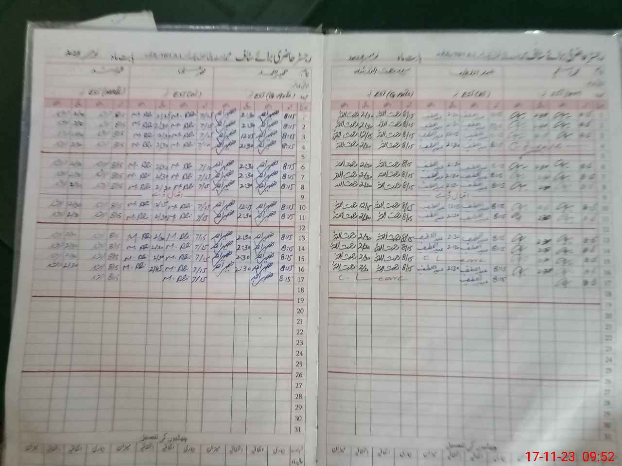| CNIC | Full Name | Designation | R/C | Absence During Last Calender Month |
