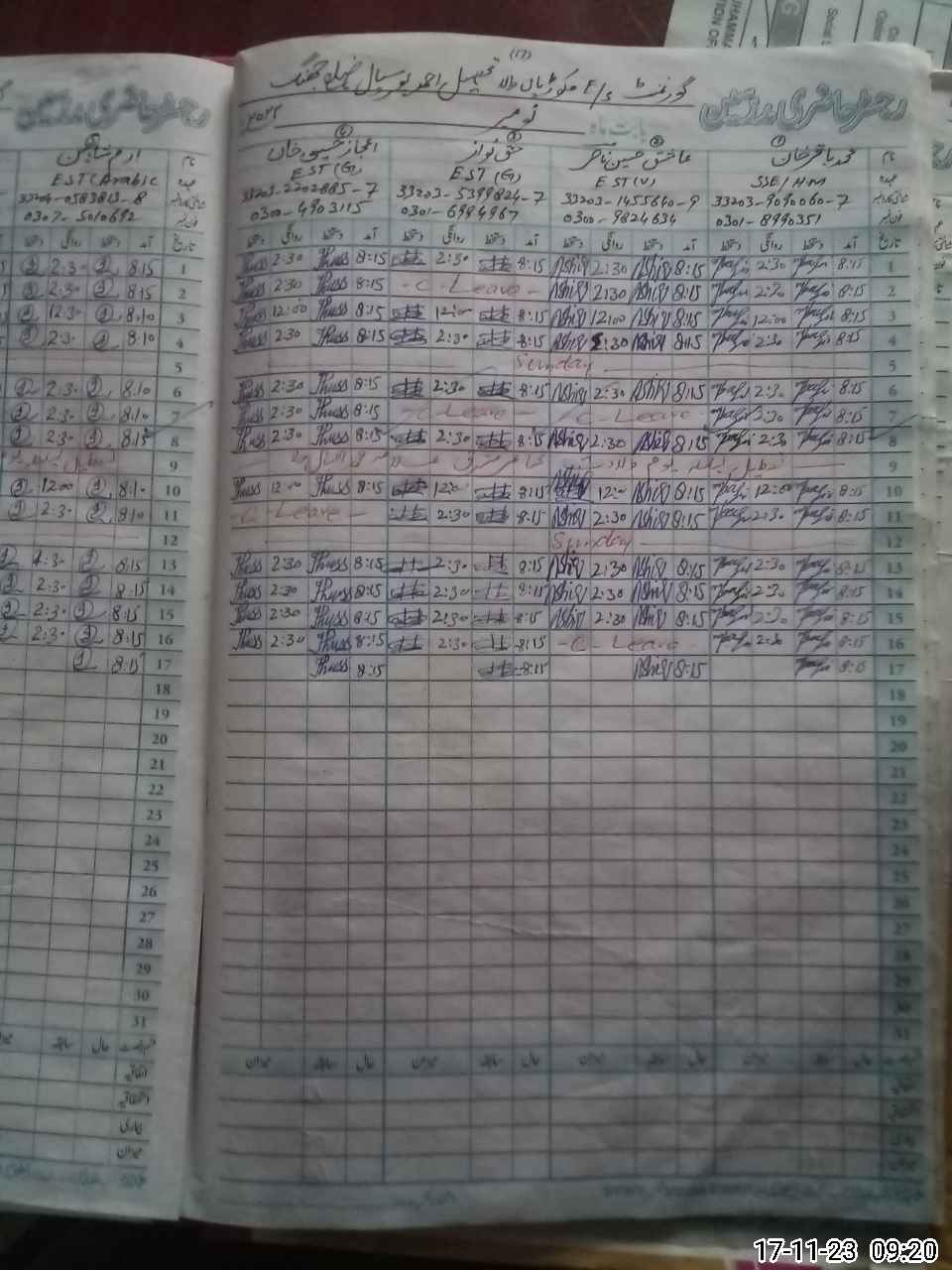 | CNIC | Full Name | Designation | R/C | Absence During Last Calender Month |