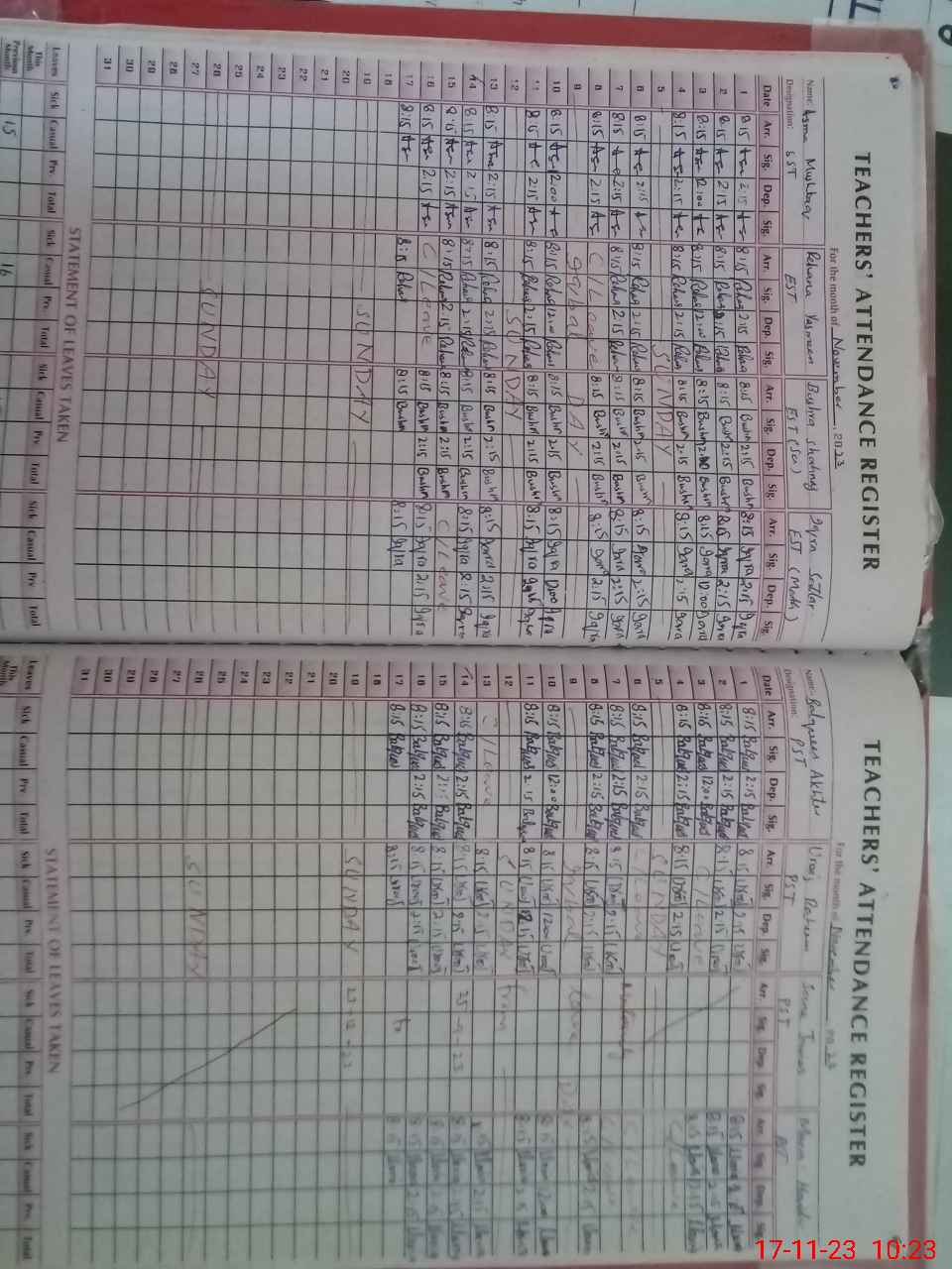 | CNIC | Full Name | Designation | R/C | Absence During Last Calender Month |