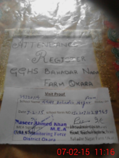 | EMIS Code: 39320114 | Name of School: GGHS BAHADAR NAGER FARM | |||