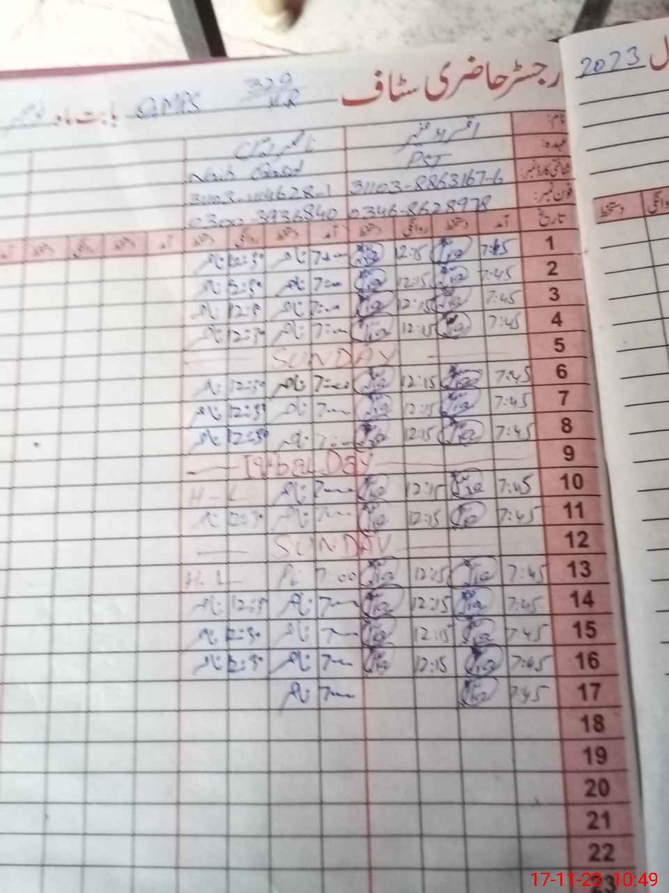 | CNIC | Full Name | Designation | R/C | Absence During Last Calender Month |