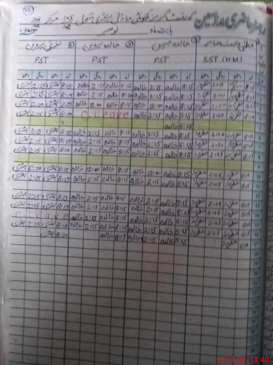| CNIC | Full Name | Designation | R/C | Absence During Last Calender Month |