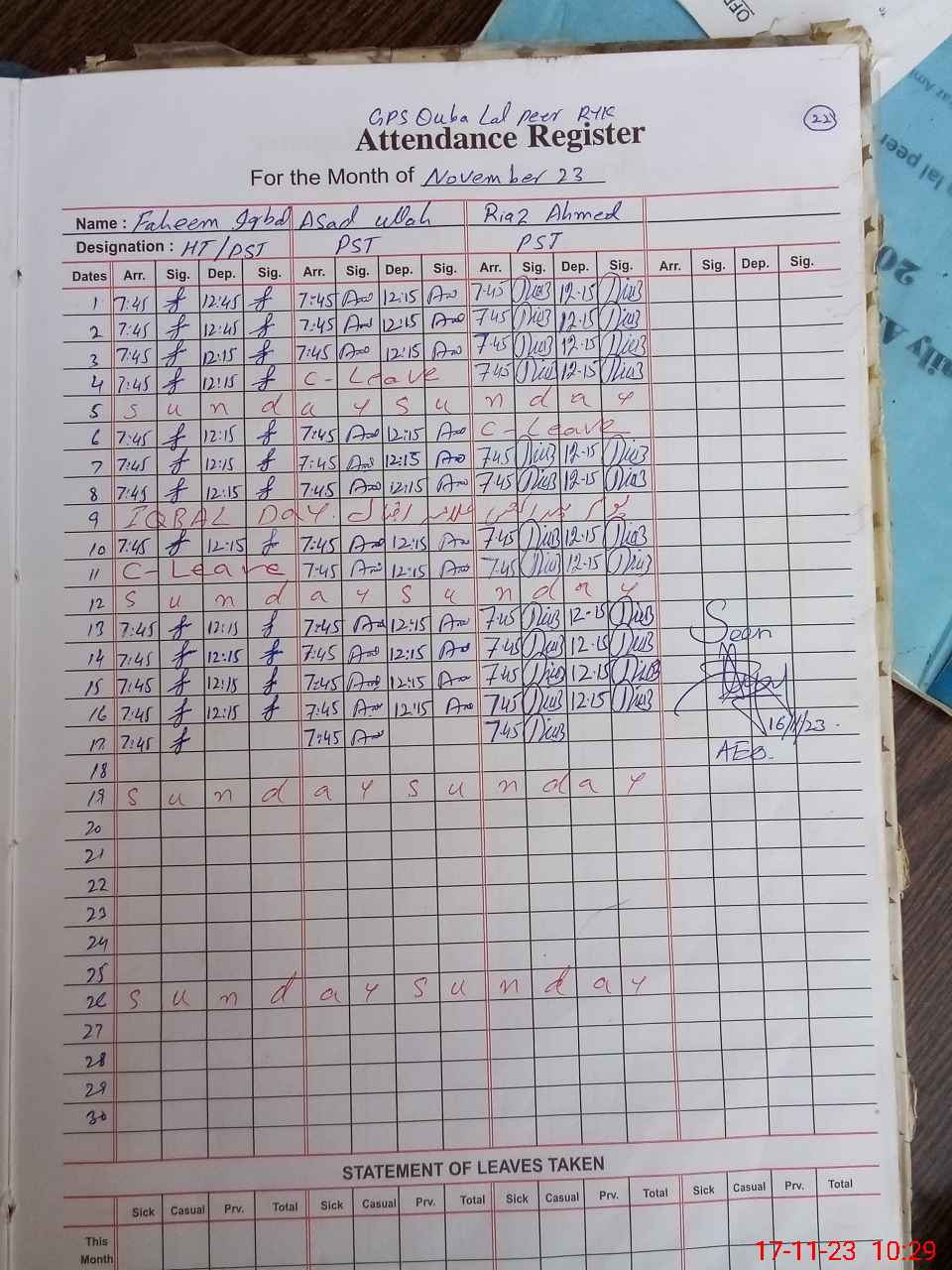 | Name: FA**** IQ**** Designation: (School Headmaster's/Headmistress's) PST Phone/Cell Number: 03**** |