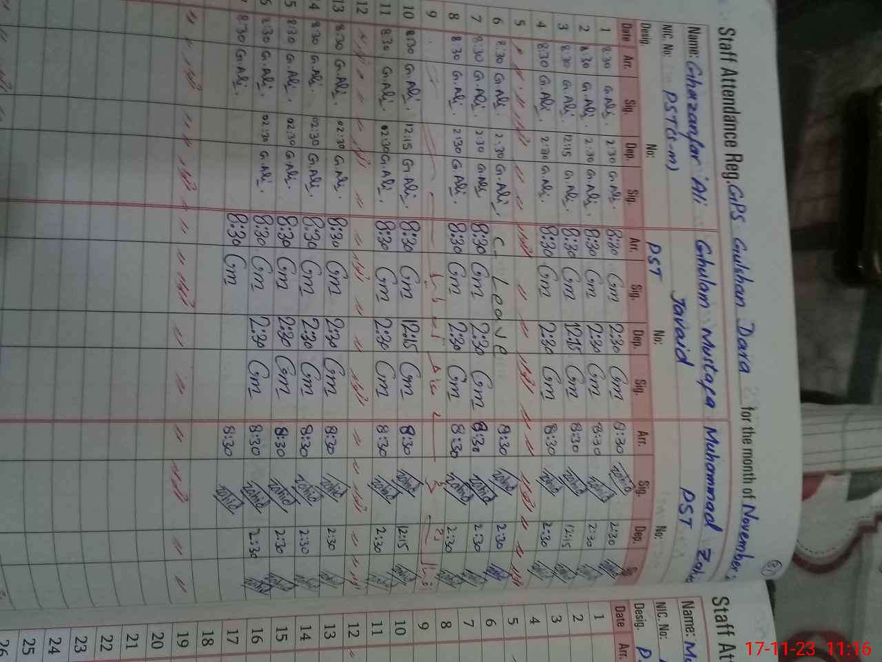 | CNIC | Full Name | Designation | R/C | Absence During Last Calender Month |