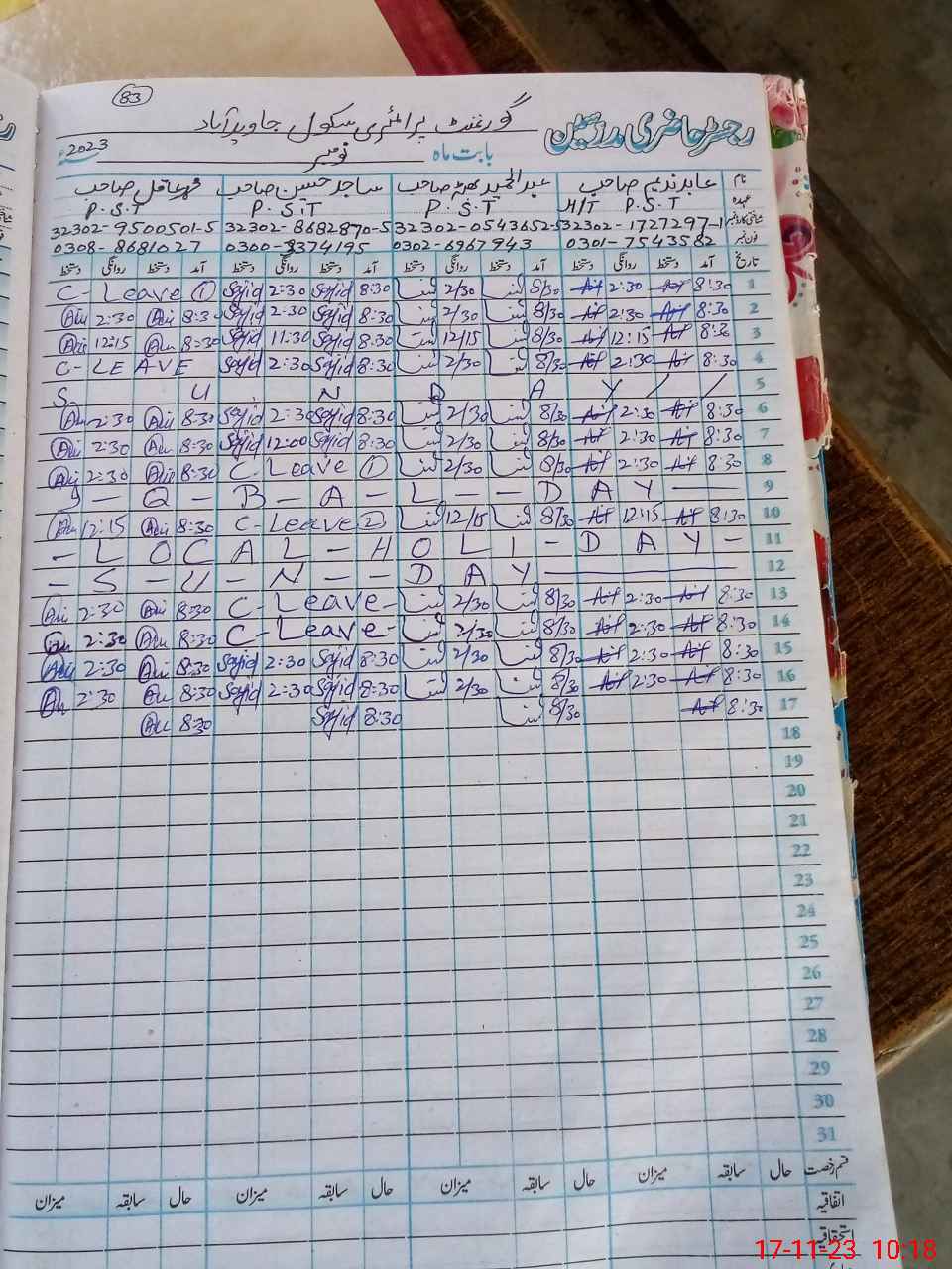 | CNIC | Full Name | Designation | R/C | Absence During Last Calender Month |