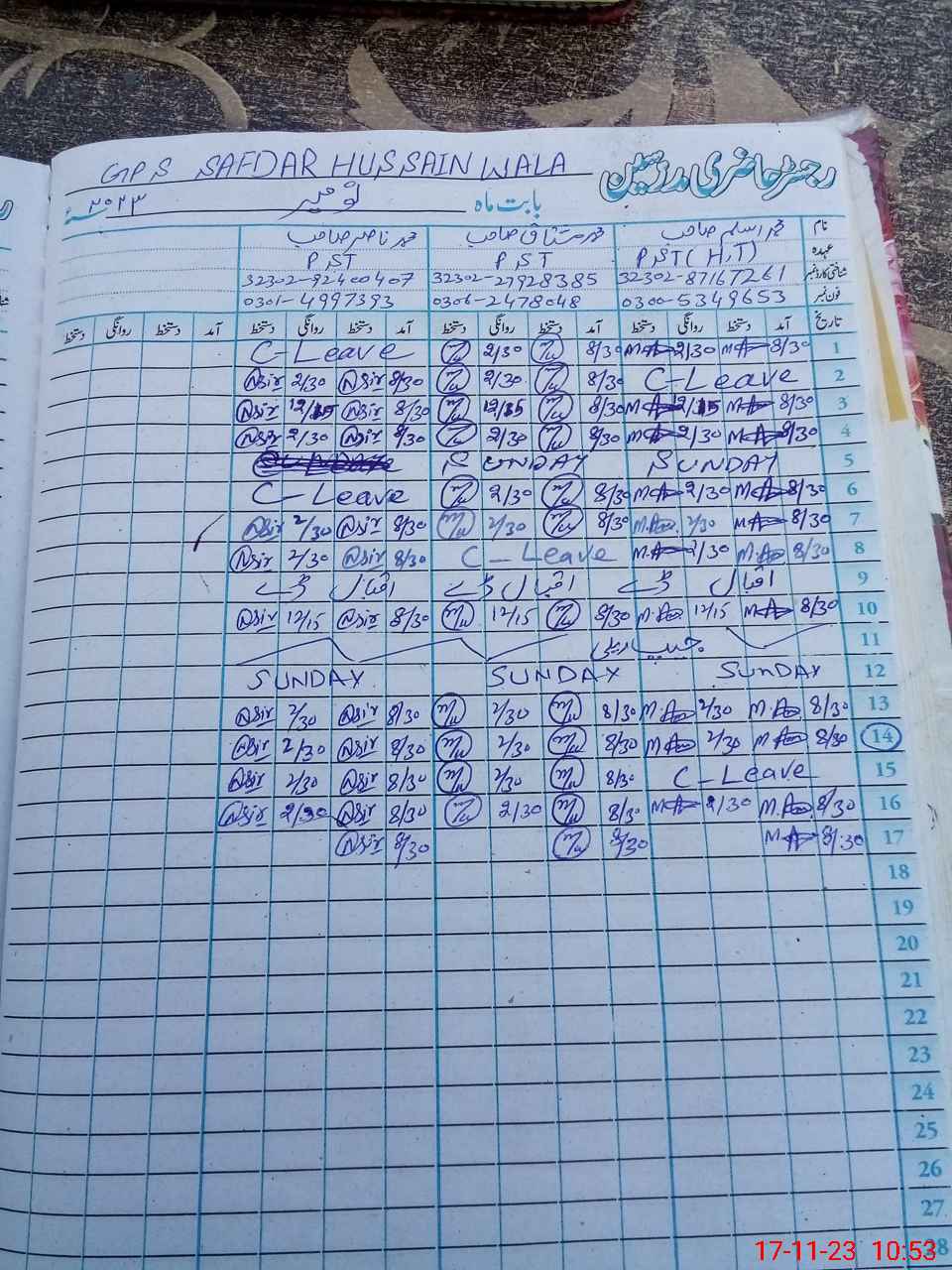 | CNIC | Full Name | Designation | R/C | Absence During Last Calender Month |