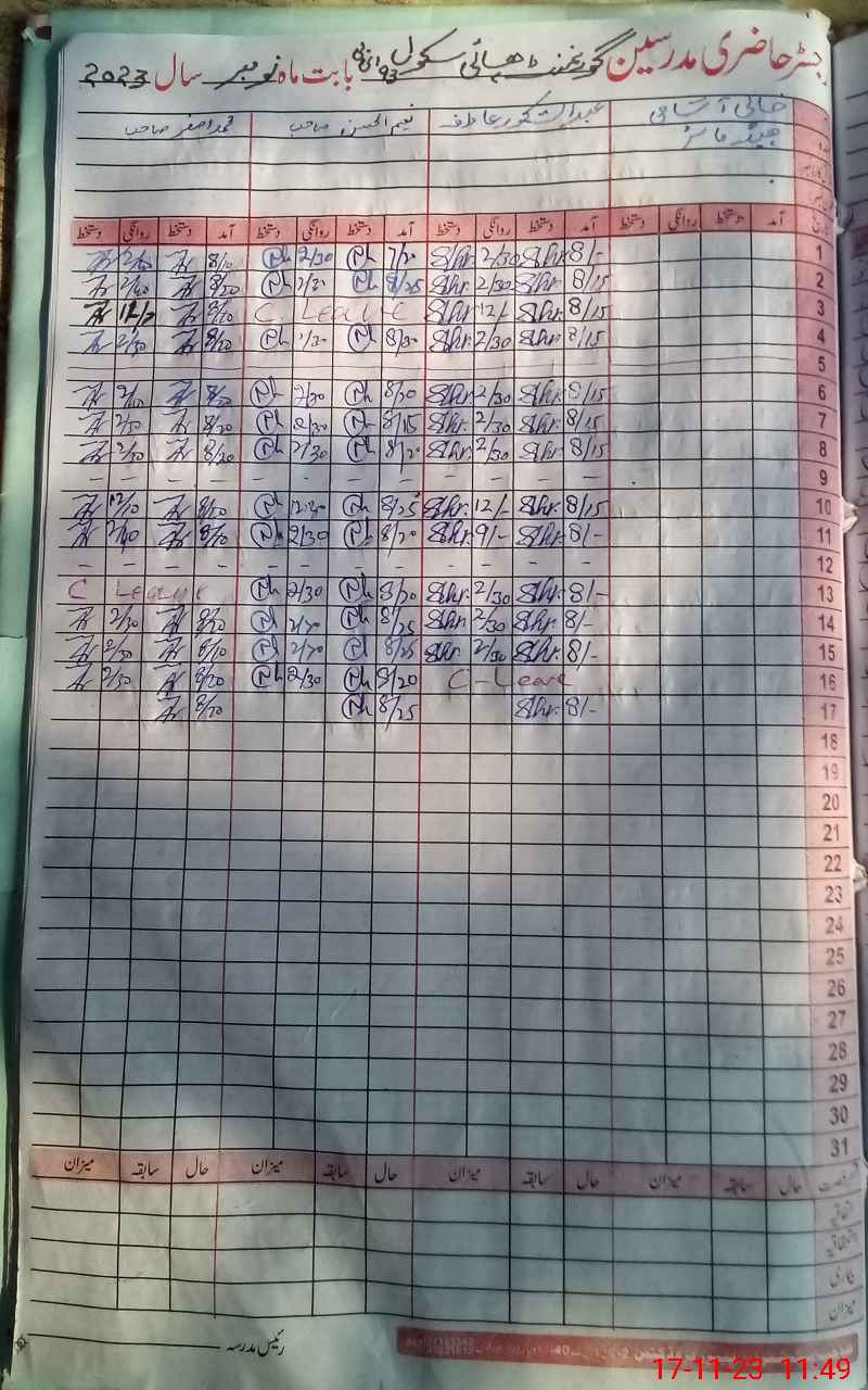 | CNIC | Full Name | Designation | R/C | Absence During Last Calender Month |