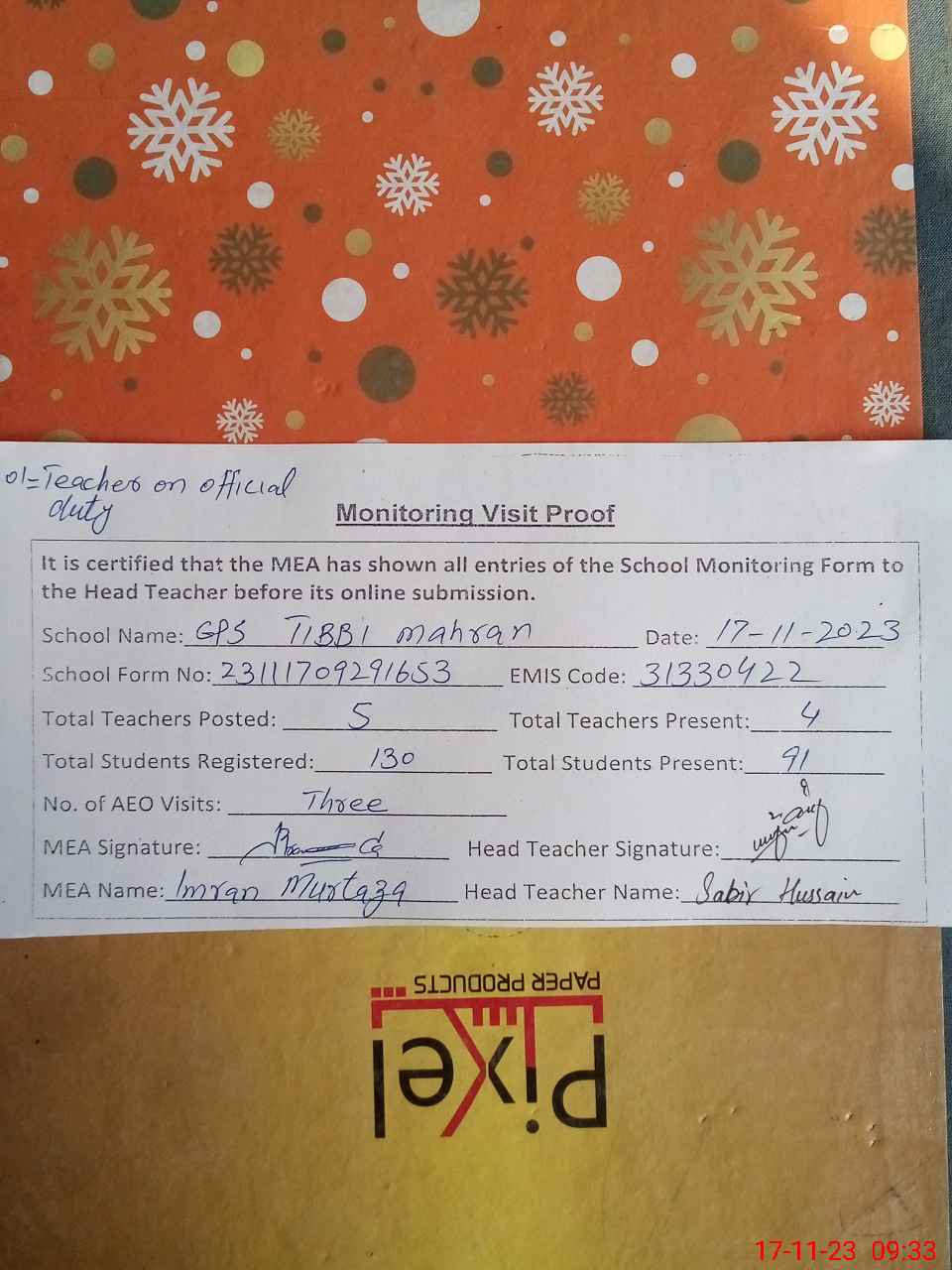 | EMIS Code: 31330422 | Name of School: GPS TIBBI MAHARAN | |||