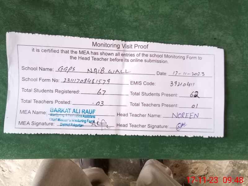 | EMIS Code: 39210411 | Name of School: GGPS NAIB WALL | |||