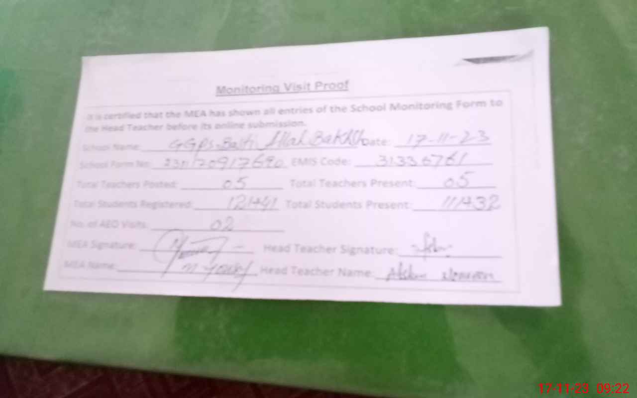 | EMIS Code: 31330761 | Name of School: GGPS BASTI ALLAH BAKSH | |||