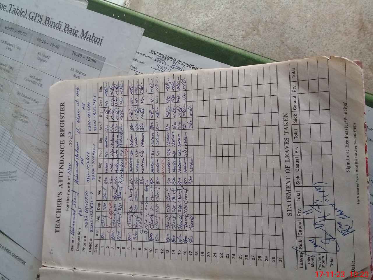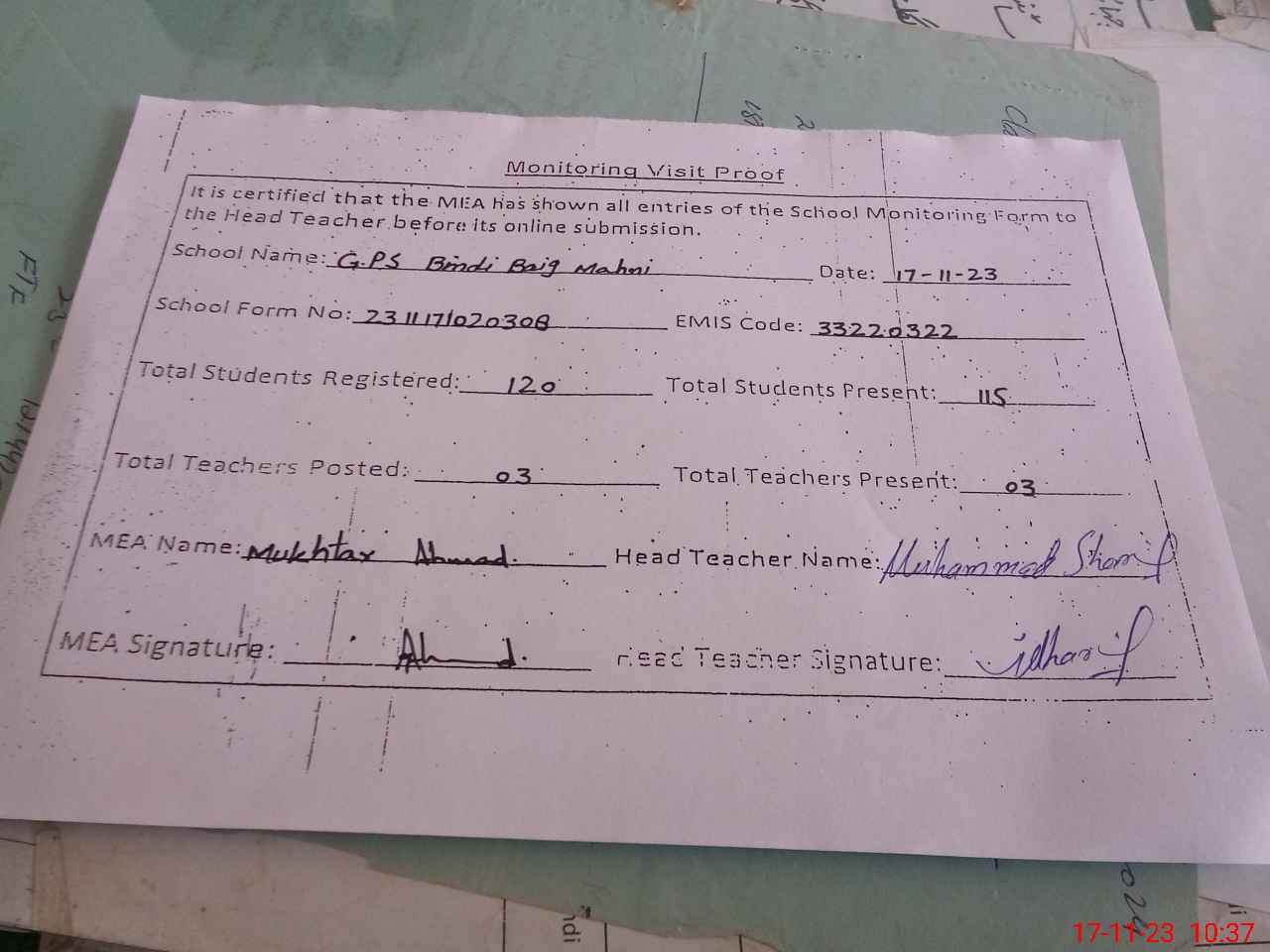 | EMIS Code: 33220322 | Name of School: GPS BINDI BAIG MAHNI | |||