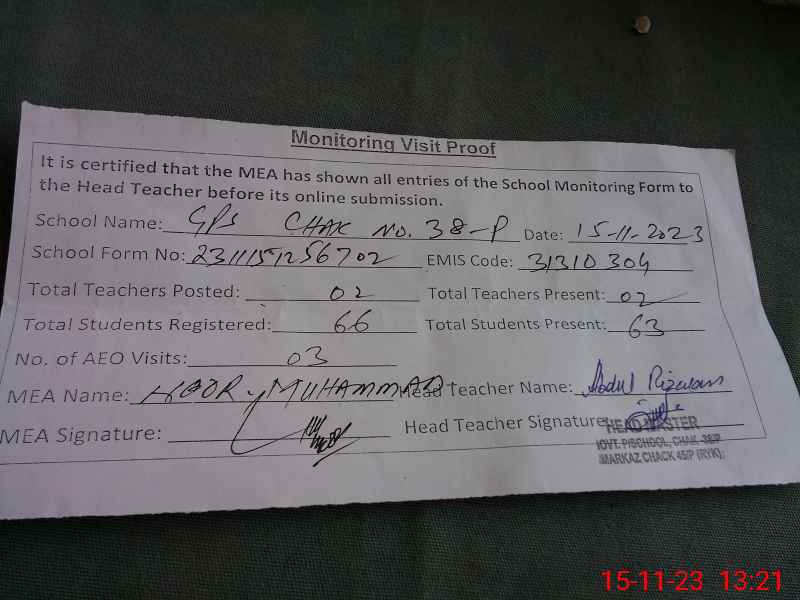 | EMIS Code: 31310304 | Name of School: GPS CHAK 38/P | |||