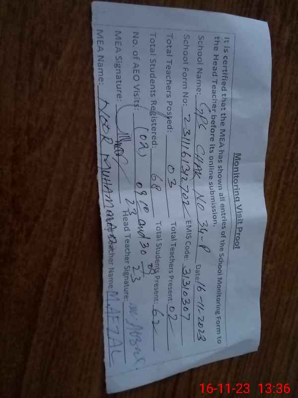 | EMIS Code: 31310307 | Name of School: GPS CHAK NO. 34/P | |||
