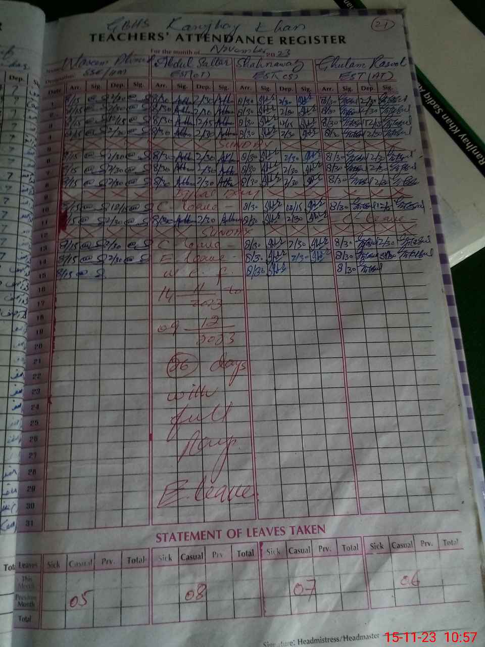 | CNIC | Full Name | Designation | R/C | Absence During Last Calender Month |