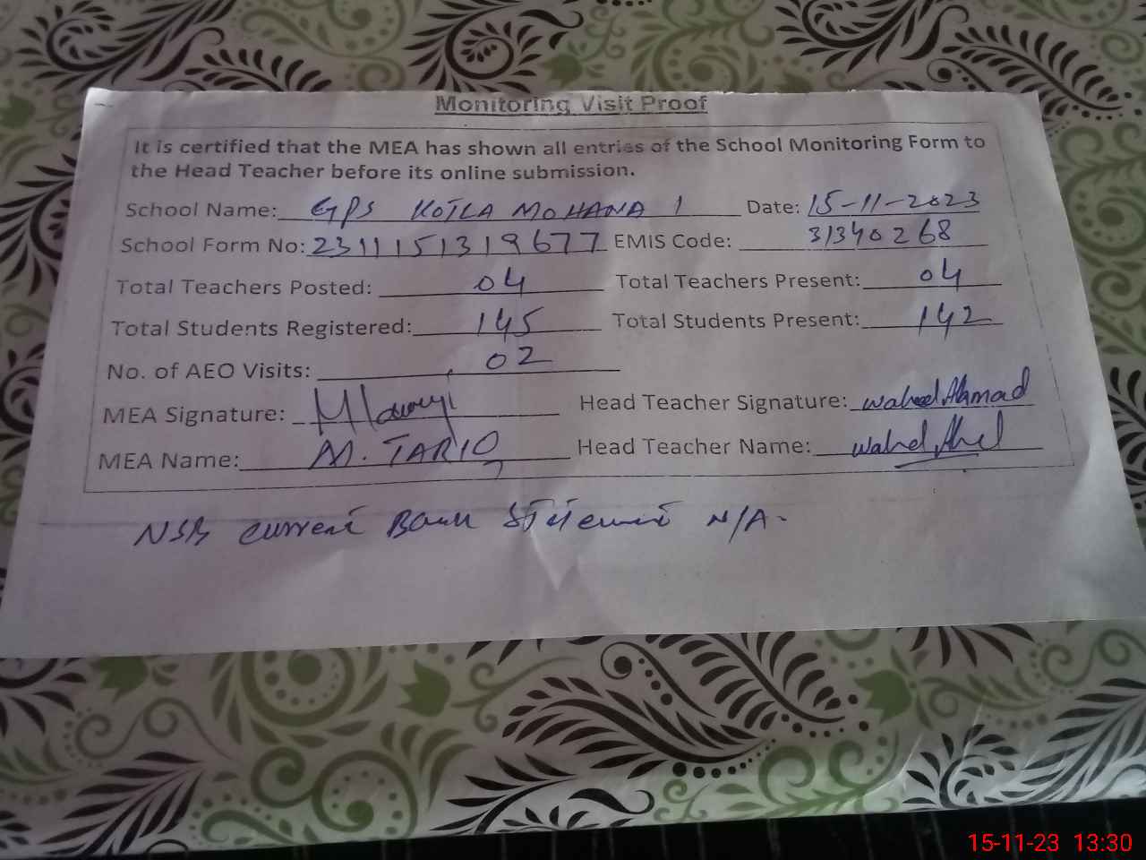 | EMIS Code: 31340268 | Name of School: GPS KOTLA MOHANA NO. 1 | |||