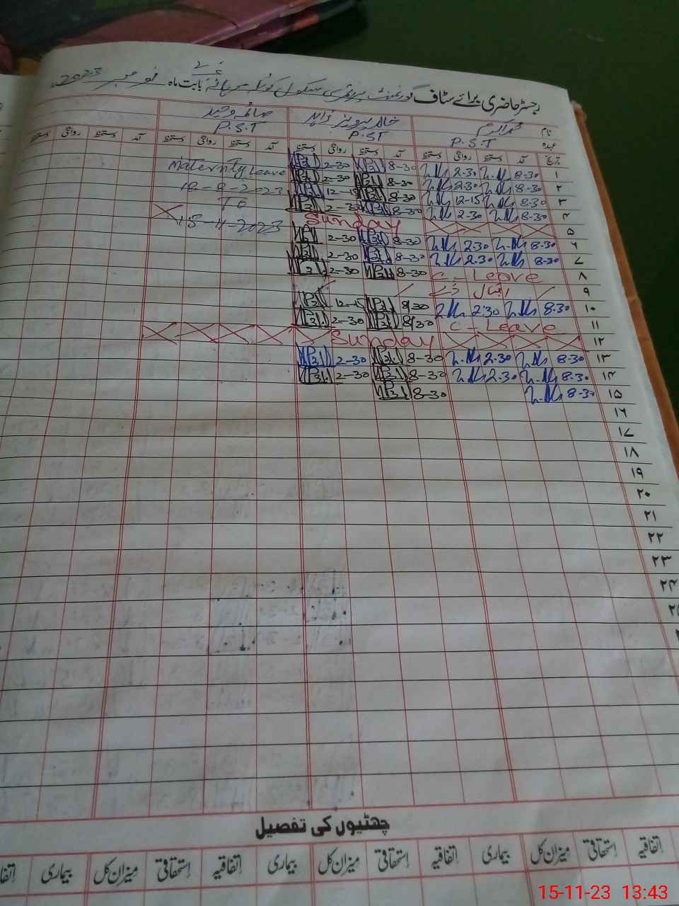| Leave | Duty | Absent | Maternity | Medical | Ex- Pak |